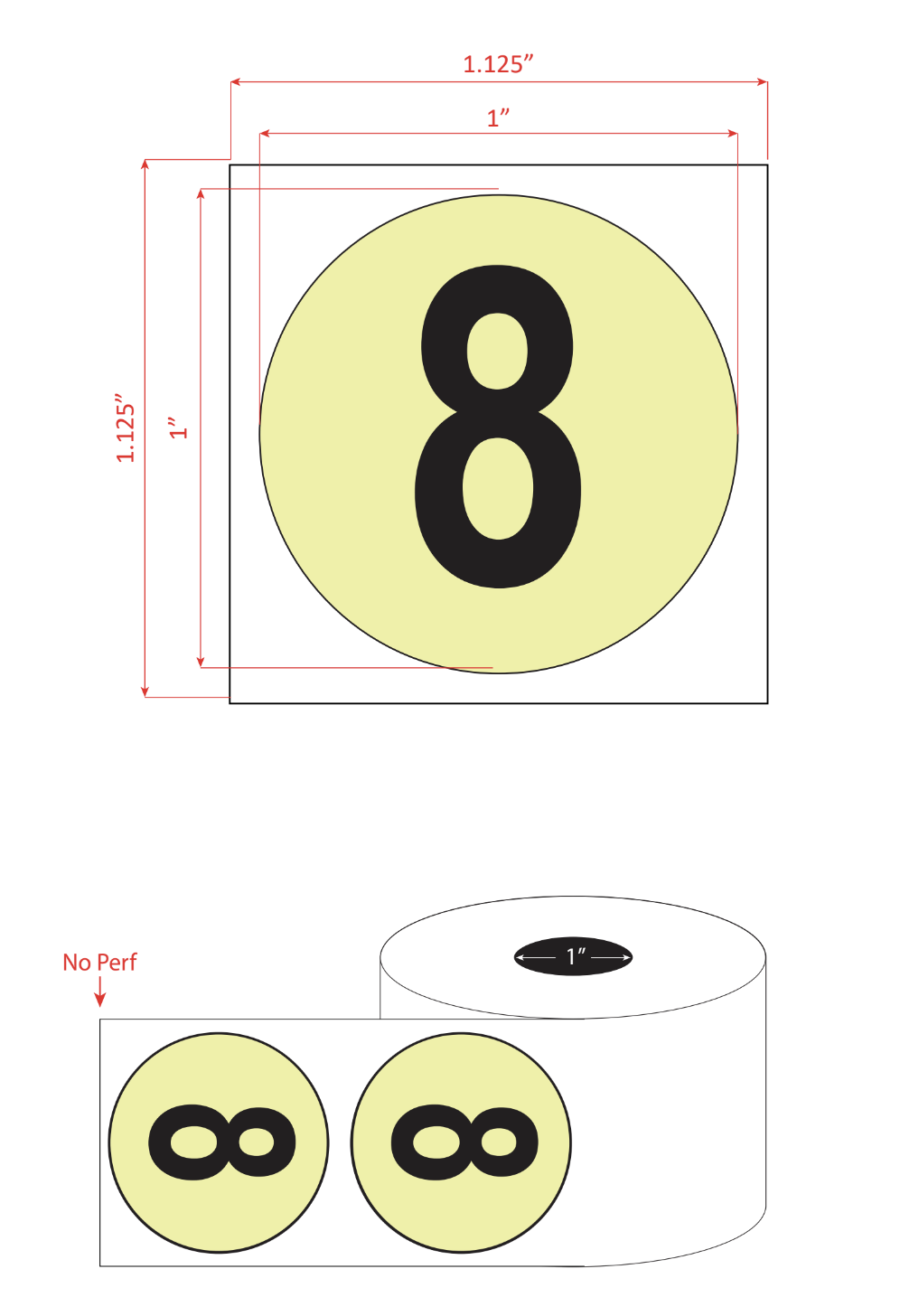 1″ Circle Label, #8 Specifications