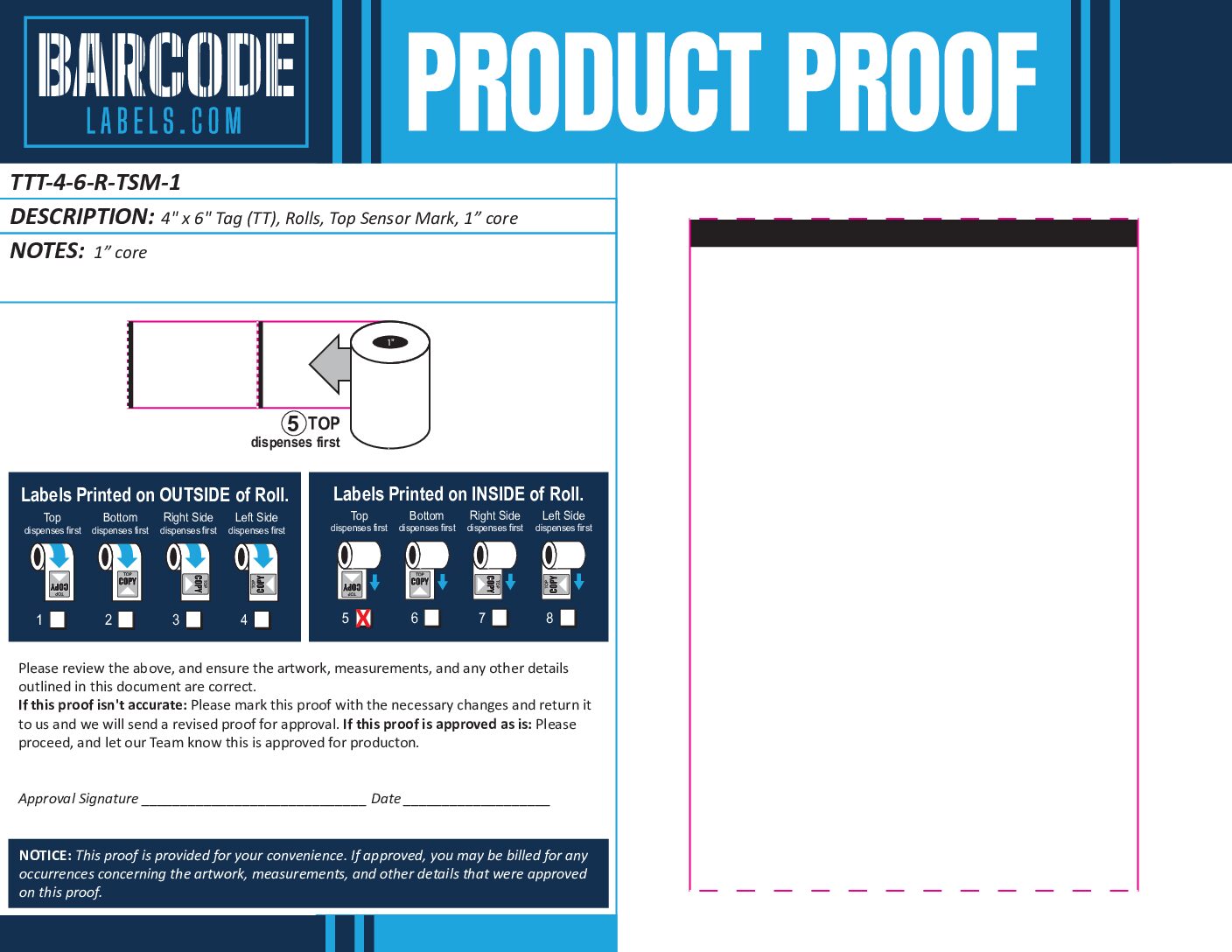 4″ X 6″ Thermal Transfer Tag with Sensor Mark (TTT), 1″ Core Specifications
